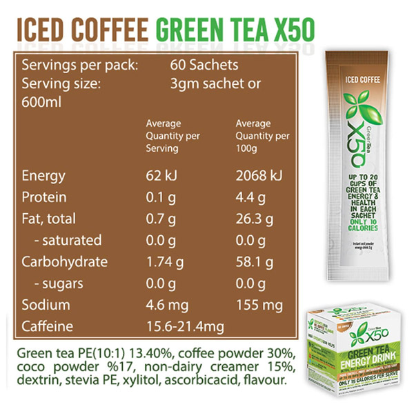 GreenTeaX50 has been designed to optimise the health benefits of green tea polyphenols and catechins, particularly EGCG, Resveratrol and other antioxidants for maximum health benefits.