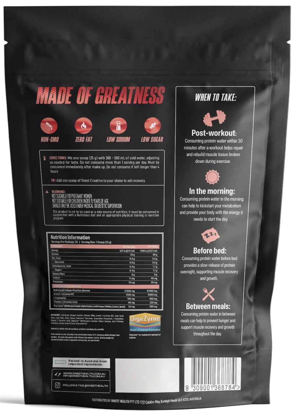 Enhanced Absorption Formula — DigeZyme® digestive enzymes help break down protein for maximum utilisation.